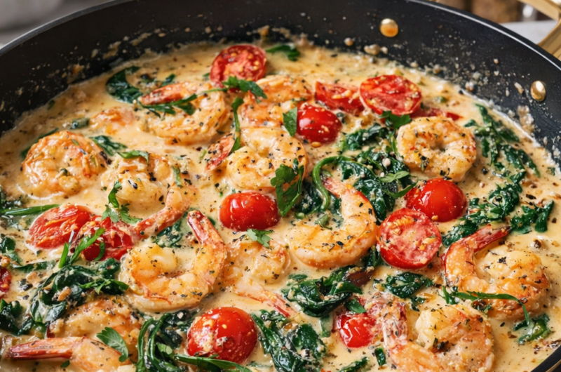 There’s something undeniably comforting about a dish that looks and tastes restaurant-worthy yet comes together in under an hour. Creamy Tuscan Shrimp is exactly that kind of meal. It’s rich without being heavy, elegant without being fussy, and packed with bold Mediterranean flavors that feel indulgent but familiar. With tender shrimp bathed in a garlic-infused cream sauce, sun-dried tomatoes, and wilted spinach, this dish delivers maximum payoff with minimal effort.