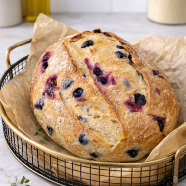 0 commentsBlueberry lemon cream cheese sourdough bread is the kind of loaf that feels special the moment you slice into it. The crumb is soft and tender, dotted with bursts of blueberry. A ribbon of lightly sweetened cream cheese runs through the center, while fresh lemon zest perfumes the dough with […]